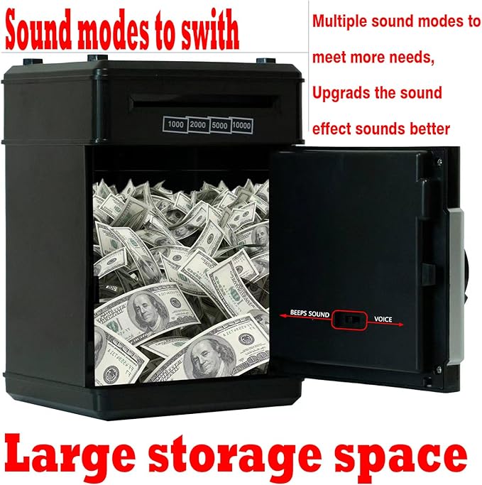 💰[ATM Piggy Bank Toys-Financial Assistant] This is a good-quality and attractive electronic piggy bank, can store 600 coins or 100 banknotes, Password protection ATM piggy bank is the guardian of children's pocket money,Saving money education ,Keep kids entertained,3 sound modes to swith,The automatic storage method will make children fall in love with this piggy bank,About birthday gifts for boys age 7-8, 8-10,Christmas gifts for 6+ years old boys, This piggy bank is the perfect choice.